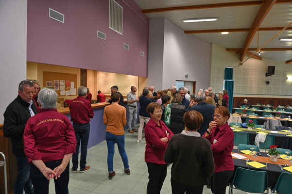 Comme à l'accoutumé c'est début octobre qu'est proposé le repas des adhérents de l'association Lapanouse Détente.Plus de 90 personnes y participaient. Cette année changement de traiteur, c'est Florence Raynal de Prévinquières qui a régalé nos papilles. Au niveau décoration elle a proposé des nappes noires qui ont fort bien accueilli un joli chemin de table et des cyclamens pour agayer l'ensemble .